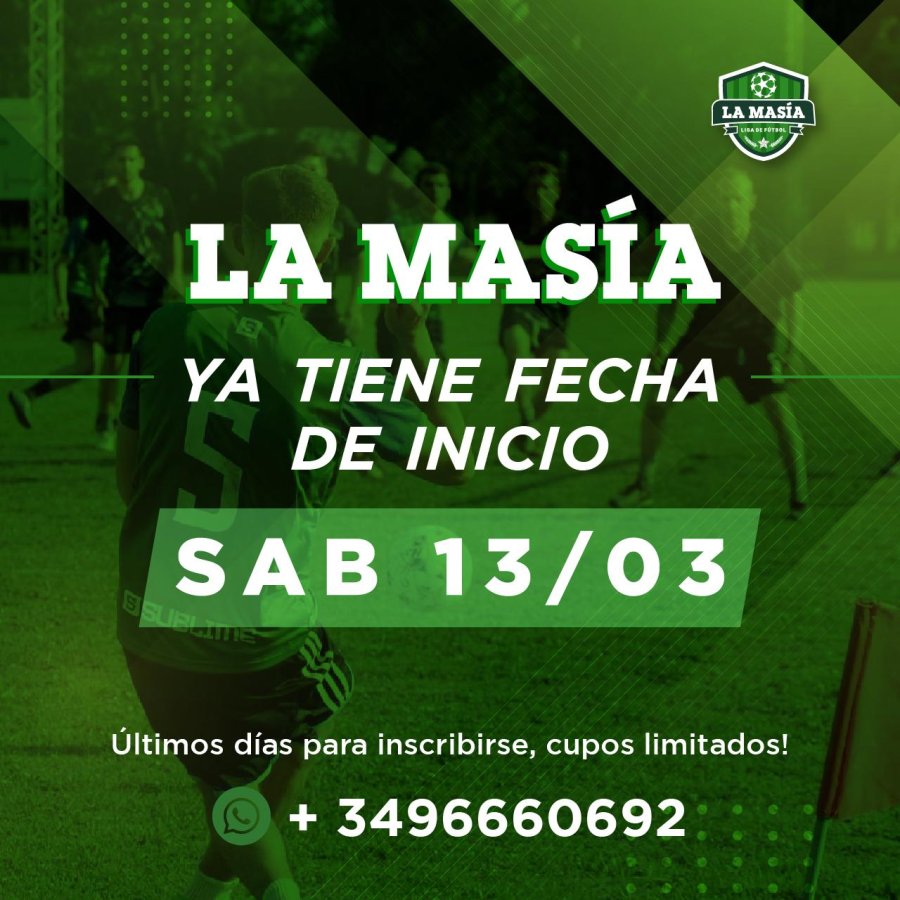 Quedan pocos días para el comienzo del torneo en la Liga "La Masia". Será el sábado 13 de marzo y se acerca el cierre de las inscripciones. Los cupos son limitados.