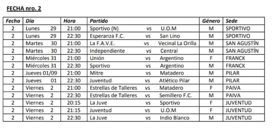 La próxima fecha comienza en Lunes en Sportivo y se desarrollará de la siguiente manera