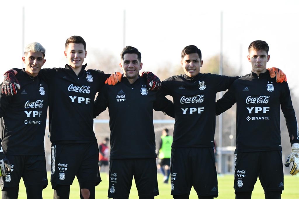 El arquero esperancino compartió otra semana de trabajo con el grupo que conduce Pablo Aimar en el predio de Ezeiza.