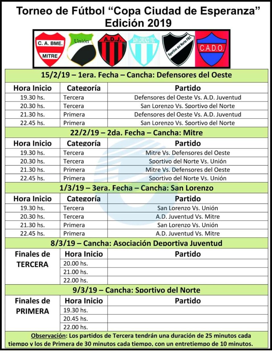 Se jugó este viernes la primera fecha de la Copa Ciudad de Esperanza en el estadio de Defensores del Oeste.