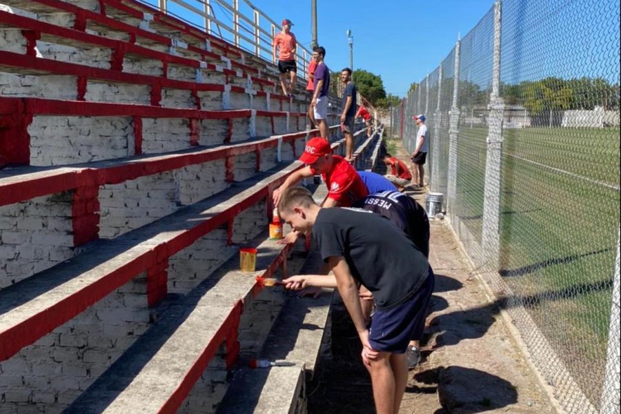 Jugadores del Club Mitre pintaron las tribunas antes del comienzo de los torneos