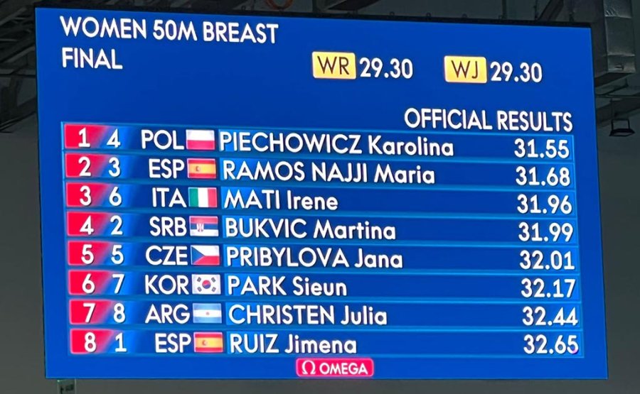 Julia Christen demostrando su extraordinario nivel finalizó en el 7m. lugar de la Final de los 50 metros pecho en el Campeonato Mundial Juvenil de Natación, que se está disputando en Lima, Perú, con más de 600 nadadores, representando a un centenar de países, en lo que es la máxima convocatoria internacional del año.
