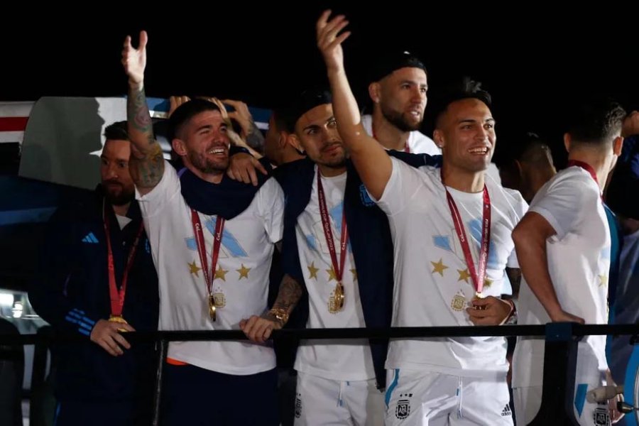 Encabezados por Lionel Messi, quien no se despegó de la Copa del Mundo, uno a uno los jugadores de la Scaloneta fueron bajando del avión. De fondo se escuchaba a la banda La Mosca cantar en vivo “Muchachos...”, el hit argentino del Mundial.