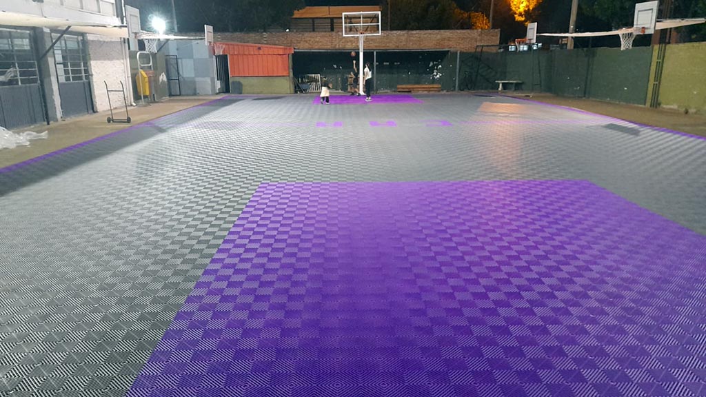 En la semana se trabajó en su colocación. Se trata del material que se utiliza habitualmente para las canchas de 3x3. Es PLC, provisto para la empresa Disema de Córdoba, que garantiza una muy buena utilización, con una muy buena vida útil.