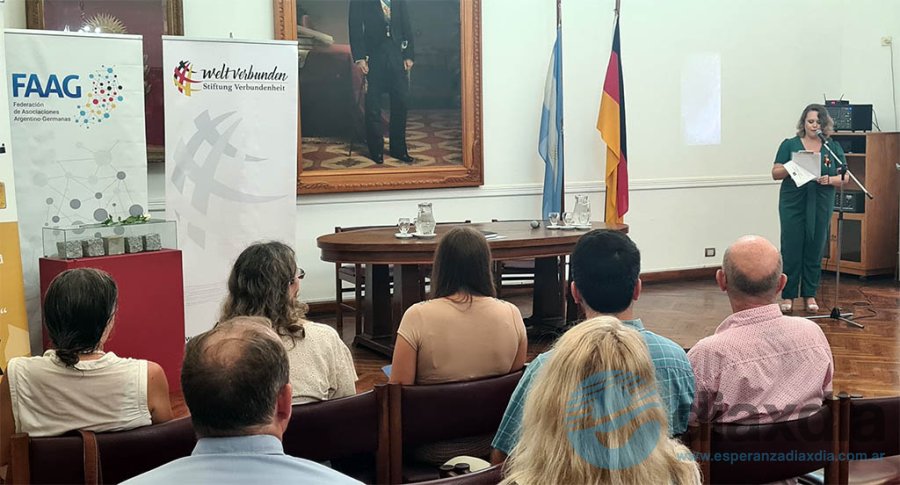 Durante la presentación de la charla, la presidenta de la Asociación Alemana de Esperanza María Elena Engler fue la encargada de dar la bienvenida a los presentes y agradecer los apoyos recibidos. También destacar la historia y el camino recorrido de la institución que celebra sus 149 años y comienza un camino hacia el sesquicentenario.