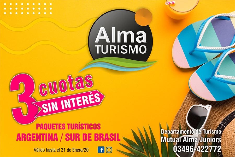 El área de Turismo de la Mutual Alma Juniors ofrece la oportunidad de armar tus vacaciones y financiarlas en tres cuotas sin intereses. Amplia variedad de opciones para visitar.