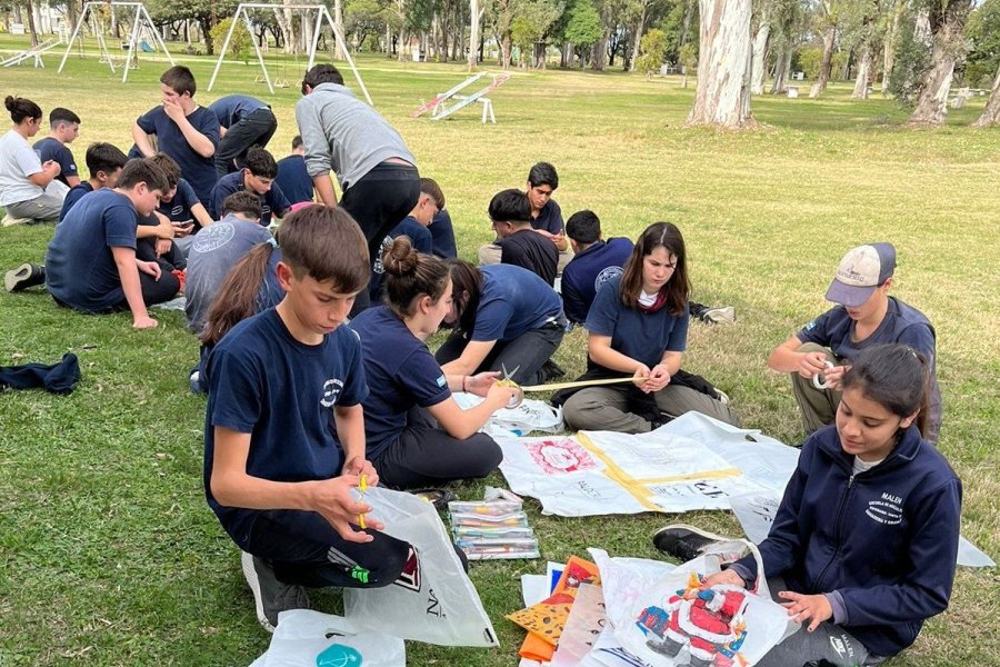 Una vez en destino, junto a los docentes acompañantes, realizaron juegos, construyeron un paracaídas, y crearon una caja de emociones y una cápsula del tiempo que instalaron en la escuela.