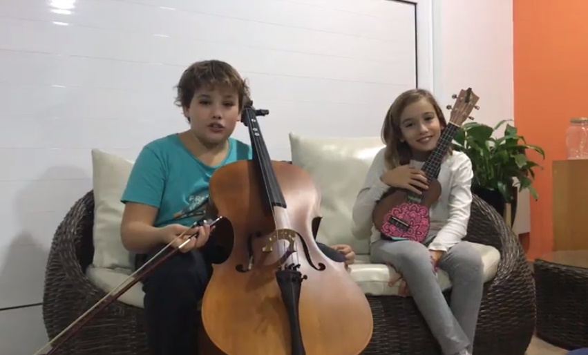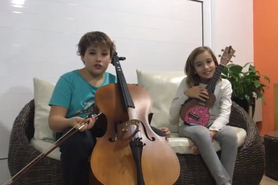 Ana Paz, de nueve años y su hermano Bautista de 11, unieron sus instrumentos y con mucha pasión y música compartieron en redes sociales "Volveremos a brindar" el tema musical de la actriz y cantante española Lucía Gil.