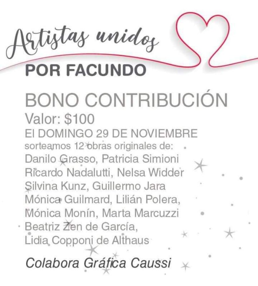 Un grupo de artistas plásticos de Esperanza se unió por FACUNDO y realizaremos un sorteo de 12 obras originales y para hacer posible la venta de los bonos contribución necesitamos de su difusión.