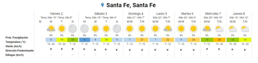 Para los próximos siete días el Servicio Meteorológico Nacional no anuncia precipitaciones para la región.