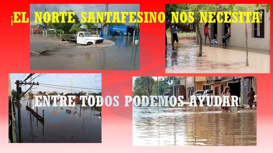 Federación Santafesina de Bomberos Voluntarios, por intermedio de sus 12 Regionales solicita a todos los Cuarteles del territorio provincial, realicen una colecta para ayudar a las poblaciones afectadas por inundaciones en el norte de Santa Fe.