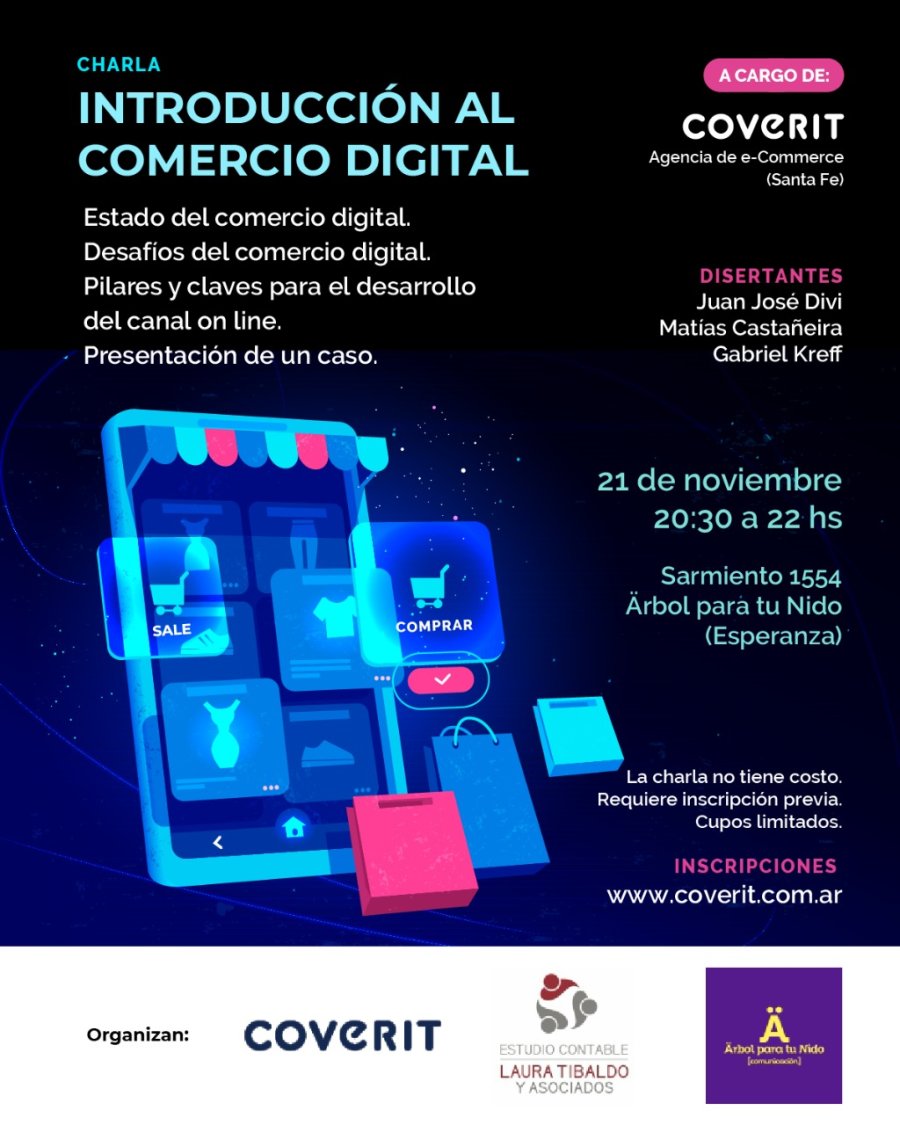 Sobre el estado y desafíos del comercio digital; los pilares y claves para el desarrollo del canal online y la presentación de casos será la charla Introducción al Comercio Digital, que será realizada este jueves 21 de noviembre de 20:30 a 22 hs. en el [Espacio] Ärbol para tu Nido (Sarmiento 1554).