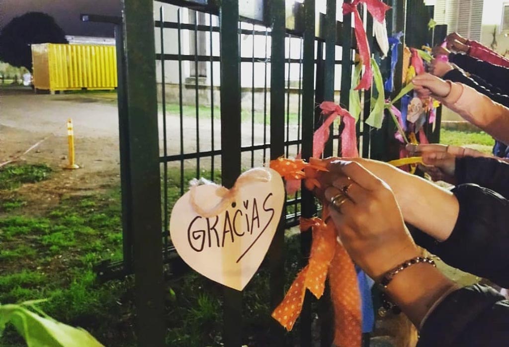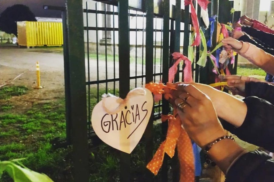 Una ocurrente iniciativa quiere expresar públicamente el "GRACIAS" a todo el personal de salud y servicios esenciales, por su entrega y compromiso de cuidarnos día a día. Bajo esa consigna ataron cintitas de colores y corazones con el agradecimiento al personal de salud.