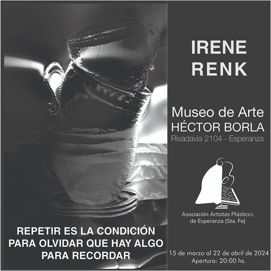 El próximo viernes 15 de Marzo, la artista Irene Renk presentará la obra Repetir es la condición para olvidar que hay algo que recordar.