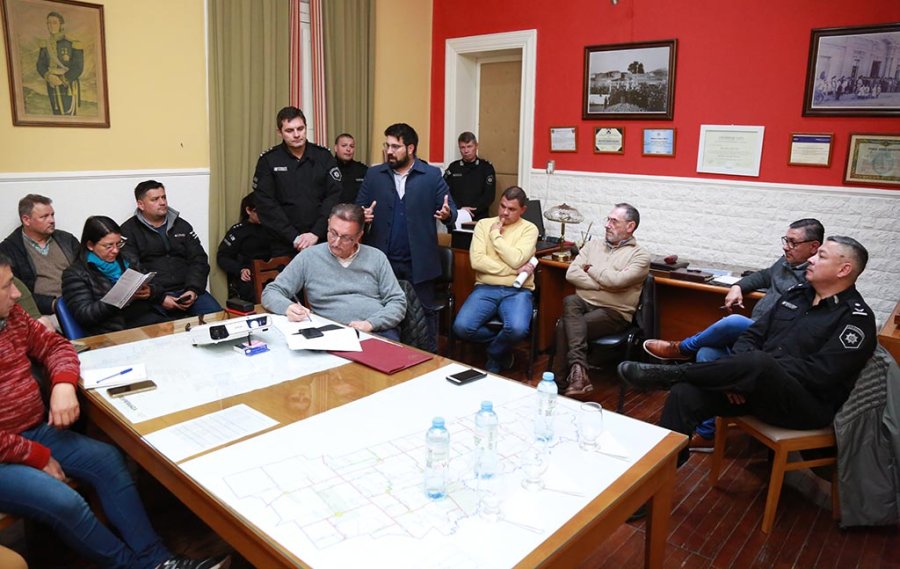 Se reunió en la policía con autoridades del Ministerio de Seguridad, vecinales, concejales, el fiscal y el secretario de gobierno. Recibieron informes y debatieron aunque no tomaron decisiones concretas.
