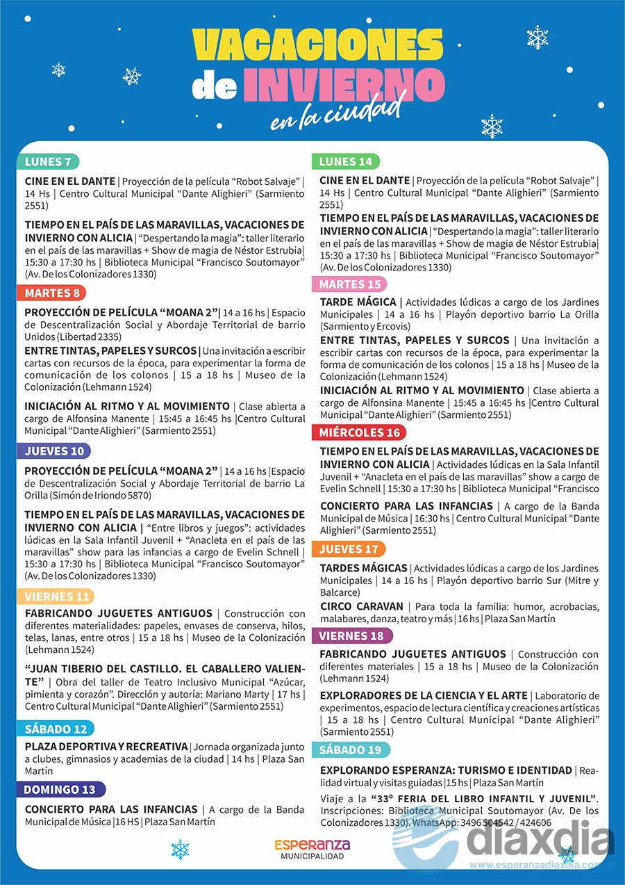 👉Desde las 17:30 h: “Esperanza Danza 2025”, Festival Interprovincial de Danzas Árabes; con la participación de artistas de las localidades de Esperanza, Santa Fe, Franck, Rafaela, Humboldt, Diamante, y la Orquesta Internacional Nicolas Kirlis (Buenos Aires); organiza: Escuela de Danzas Árabes Awalim. En la Sociedad de Canto. Sarmiento 1728.