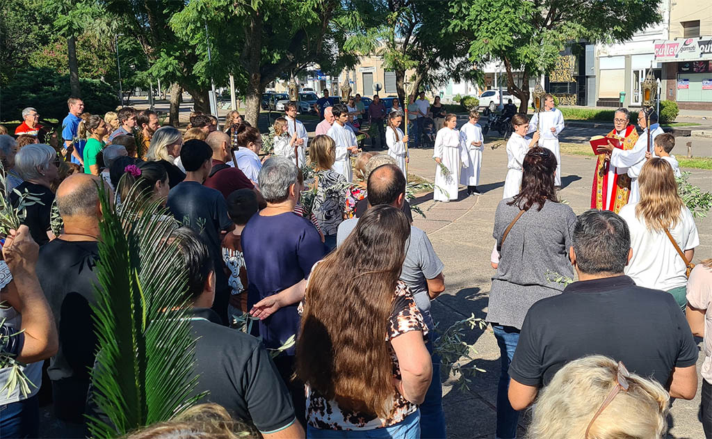 Este domingo en el templo mayor de la ciudad se realizó la bendición de los olivos en la esquina de Sarmiento y 25 de Mayo y luego en procesión se trasladaron a la Basílica Natividad para compartir la Santa Misa.