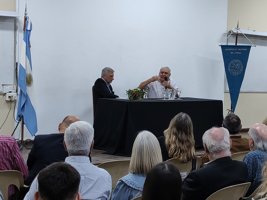 Seguidamente, se ofreció la charla “Universidad, Política y Movimiento Estudiantil en los ’70: el impacto sociológico de la FAVE en Esperanza”, a cargo del docente e investigador Roberto Leonardi y el periodista y escritor Rogelio Alaniz.