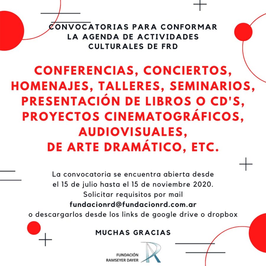 La Fundación Ramseyer Dayer convoca a los interesados a presentar sus proyectos, integrar la base de datos y formar parte de nuestra Agenda de Actividades Culturales.