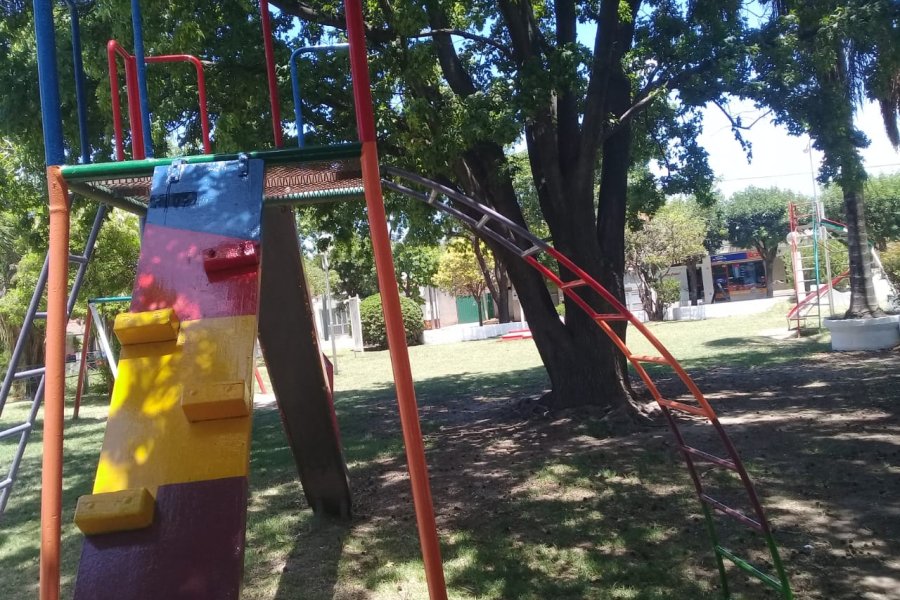 - Repintado de la estructura de todos los juegos, reemplazando las tablas de madera de los subibajas y de las hamacas, por unas nuevas de caucho.