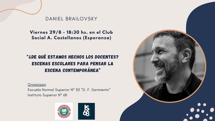 El Instituto Superior de Profesorado N° 68 y la Escuela Normal Superior N° 30 “D. F. Sarmiento” invitan a participar de la conferencia “¿De qué estamos hechos los docentes? Escenas escolares para pensar la escena contemporánea”, a cargo de Daniel Brailovsky.