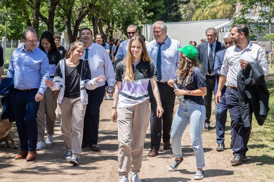 Jaime Perczyk estuvo acompañado por el rector Enrique Mammarella, el director de la Escuela, Rodrigo Benítez, estudiantes, nodocentes y docentes. Recorrieron residencias y espacios didácticos-productivos. Además, dialogaron sobre proyectos y necesidades de la institución.