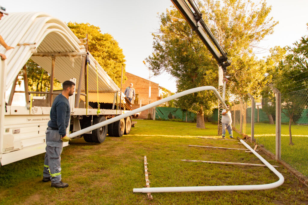 Este martes llegaron a la ciudad 75 nuevas columnas de alumbrado que la Municipalidad de Esperanza adquirió para continuar avanzando con el programa “Iluminando tu Barrio” en barrio Unidos, que había quedado pendiente de la gestión anterior.
