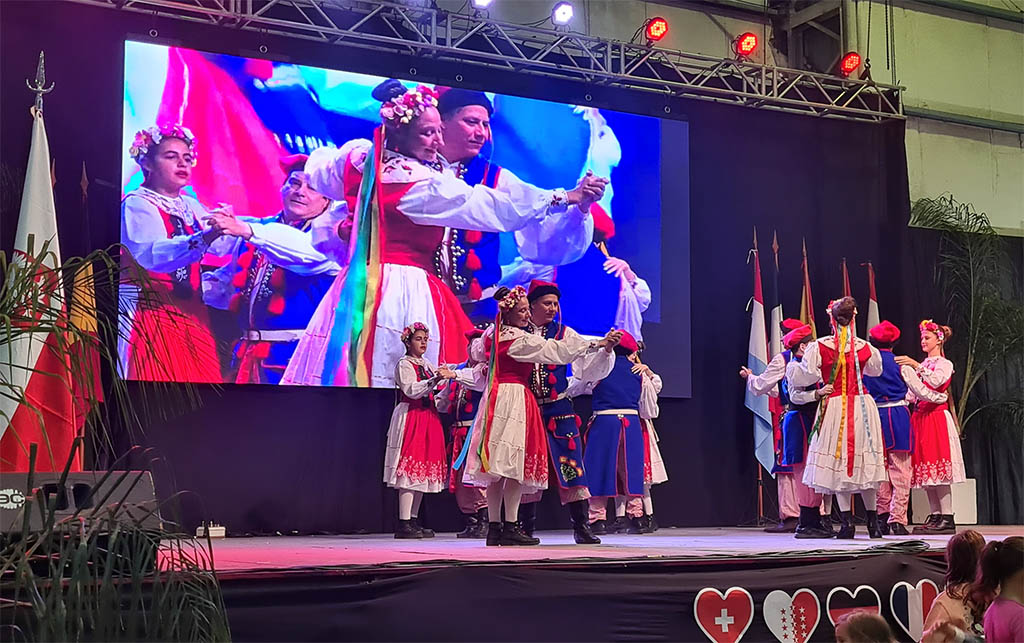 El domingo todo comenzó con el Ballet de Danza Clásica Liceo Municipal “José Pedroni”, luego el Taller de Teatro de la Asociación Italiana “Unione y Fomento” presentó el “Carnaval de Venecia”, siguieron los integrantes del Grupo de Baile “Huayra Muyoj” y de la Academia “Arte en Movimiento”: Danzas Árabes, Urbano y K Pop.Después del mediodía subieron al escenario mayor de la fiesta los representantes de Polonia con el Ballet “Águila Blanca”, siguieron los “Lirios de los Alpes” baile típico suizo, el Ballet Folklórico Palestino “Shabibat”, el Grupo Danzas Folklóricas “Yachay”, “Los Soneros de Habana”, Academia de Baile y Habana Salsa.
