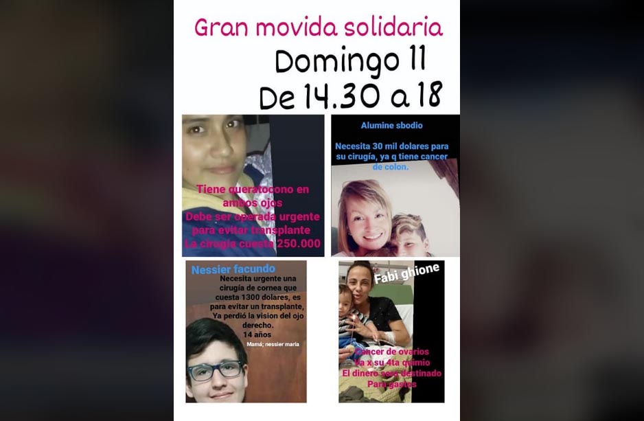 Un grupo de voluntarias organizaron una movida solidaria para este domingo de 14:30 a 18 horas con urnas en diferentes plazas de la ciudad para colaborar con ellos con la donación de dinero. Cada uno que se acerque al lugar recibirá un bono para participar del sorteo de numerosos premios.