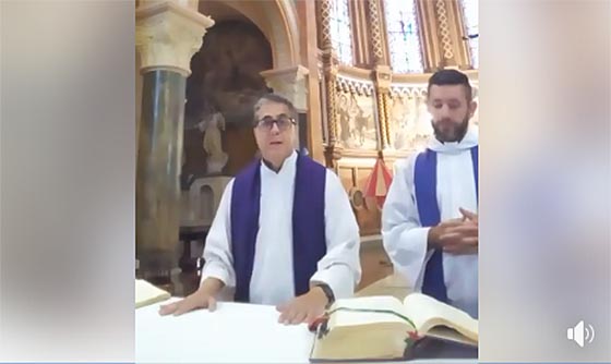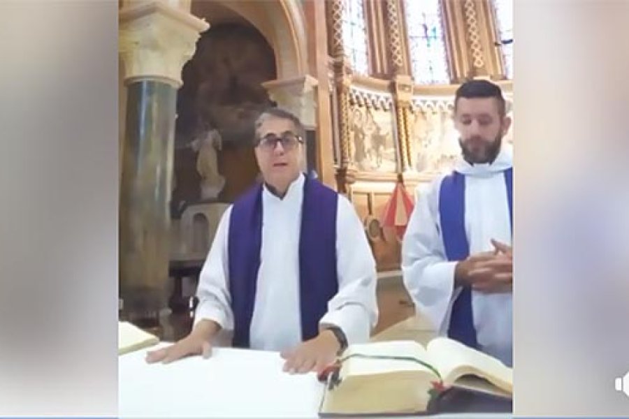 El Padre Ernesto Aguera y el padre César Zingerling explicaron desde un video difundido en diferentes redes de las capillas locales que la eucaristía se celebrará todos los días en soledad para rezar por todos y para que finalice esta pandemia.