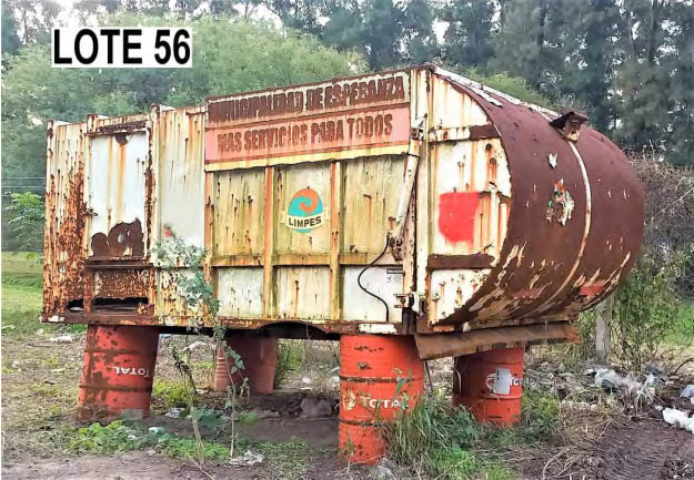 En esta oportunidad, los lotes a subastar incluyen: 2 Cajas compactadora de residuos, Horno para cerámica de hierro, 5 Garitas de chapa, Cabina de Vigilancia de banco, Partes de Motores Perkins, Cubiertas usadas agrícolas, viales y con guías, 4 Calefactores a gas, Puertas de aluminio, Celosías de madera ,2 Portones de hierro, 2 Columnas de hierro reticulado, Carcazas de luminarias de aluminio, Llantas de camión con aros, Ventanillas, Puertas de madera y de chapa, Chapas de cabinas, 3 Basureros de chapa, entre otros.