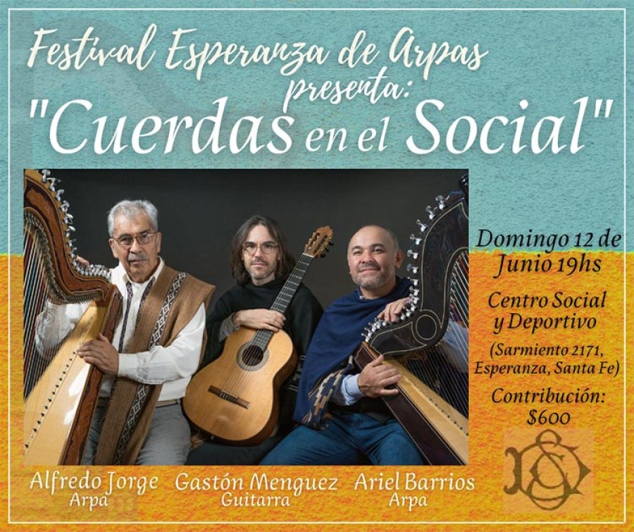 Alfredo Jorge, arpa, Gastón Menguez, guitarra y Ariel Barrios, arpa, presentarán un repertorio renovado, con la pasión de siempre por la música.