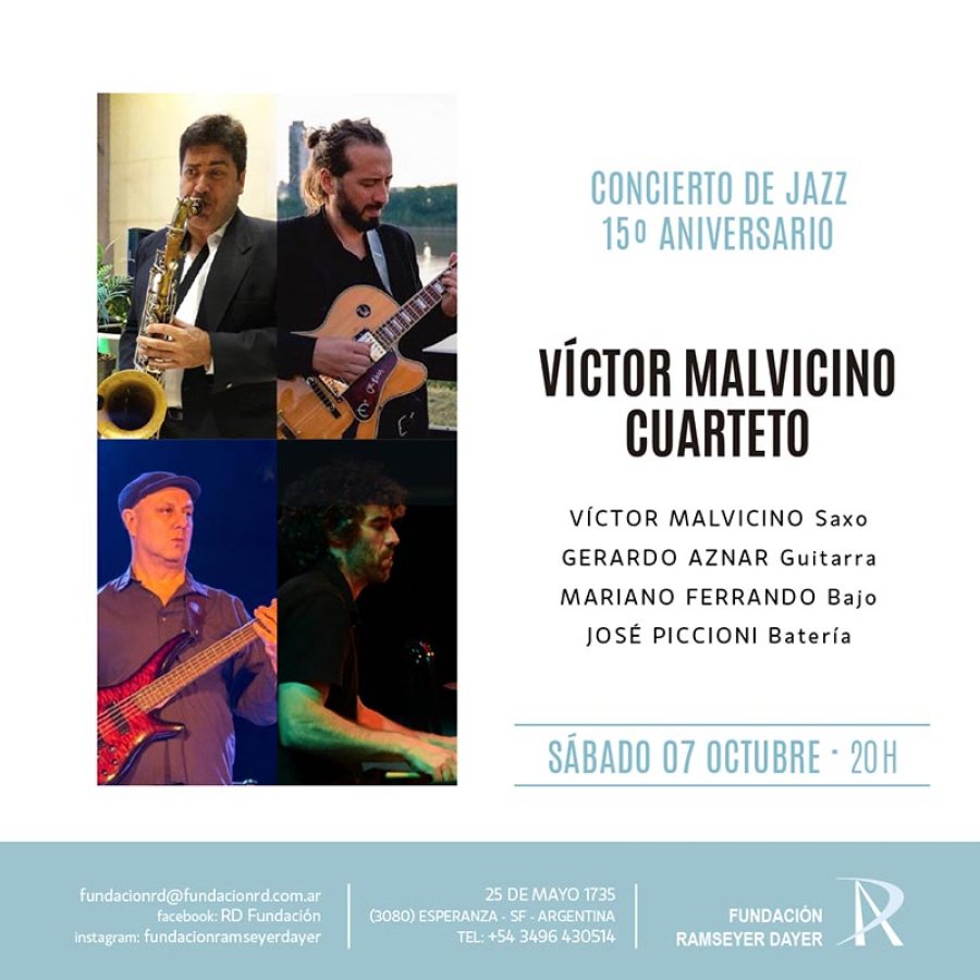En esta oportunidad compartiremos la apertura de la muestra “Naturaleza viva” de la artista María Regina Linares y de un concierto de jazz presentado por “Víctor Malvicino Cuarteto”, con los músicos Víctor Malvicino en Saxo, Gerardo Aznar en Guitarra, Mariano Ferrando en Bajo y José Piccioni en Batería quienes presentarán un repertorio de jazz y bossa nova, con clásicos de los años 60, 70 y 80.