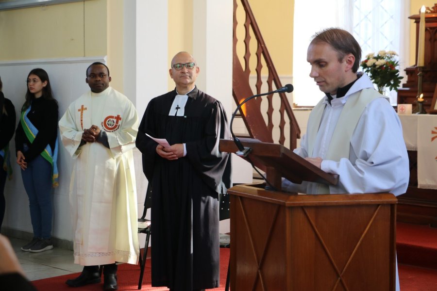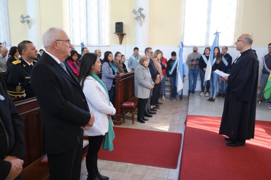 Luego las autoridades ingresaron a la Iglesia Evangélica del Río de la Plata, ubicada precisamente en esa esquina frente al paseo central de la ciudad. Encabezados por la Intendente Ana Meiners, ingresaron al templo el anfitrión, el Pastor Jorge Buschiazzo, acompañado de los sacerdotes católicos Alfredo Mbalanda (San José) y José Luis Lovatto (Basílica Natividad).