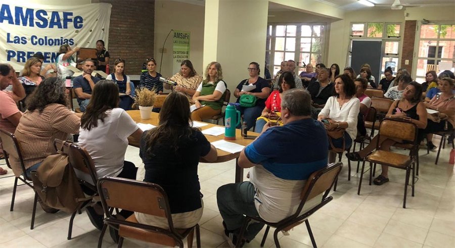 Tras la reunión paritaria se concretó el encuentro entre delegados departamentales de Amsafé y desde allí las asambleas departamentales que analizaron la oferta. En Las Colonias se realizó este miércoles por la tarde.