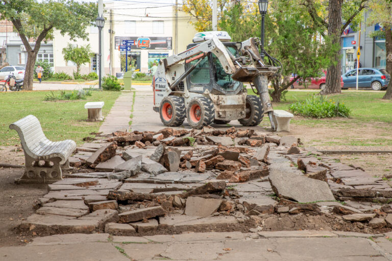 Evangelina Pirola explicó que “se colocarán adoquines de dos colores en todas las veredas de la plaza. Se trata de una intervención que demandará una inversión de 95 millones de pesos y tiene un plazo de obra de un mes y medio”.