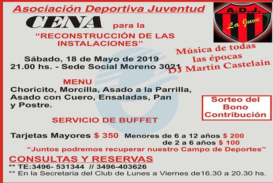 Las consultas y reservas se pueden realizar al (3496) 531344 – (3496) 403626, o en la Secretaría del Club de lunes a viernes de 16.30 a 20.30 horas.