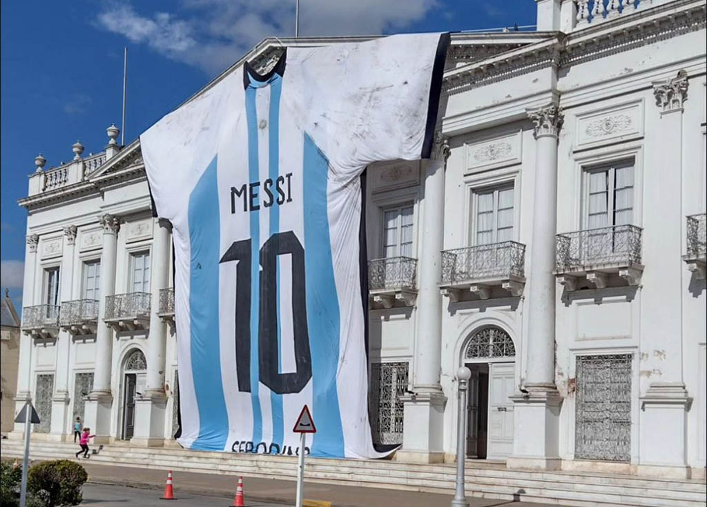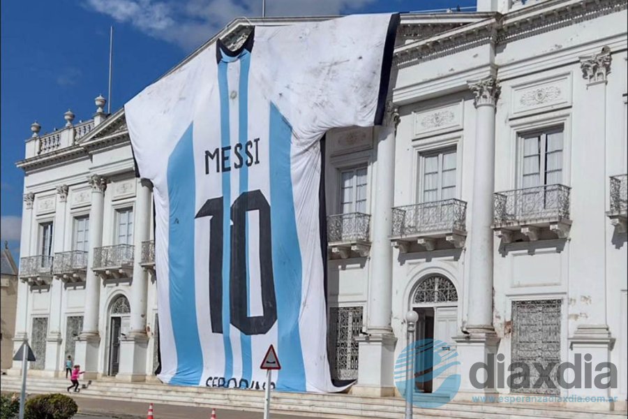 Desde este martes la camiseta de la Selección Argentina más grande del país se encuentra desplegada en la fachada de la Municipalidad de Esperanza. La exhibición se realiza en el marco del programa “Abanderados” del Ente Cultural Santafesino, una muestra itinerante, que además incluye banderas de 12 departamentos y más de 30 localidades de la provincia.