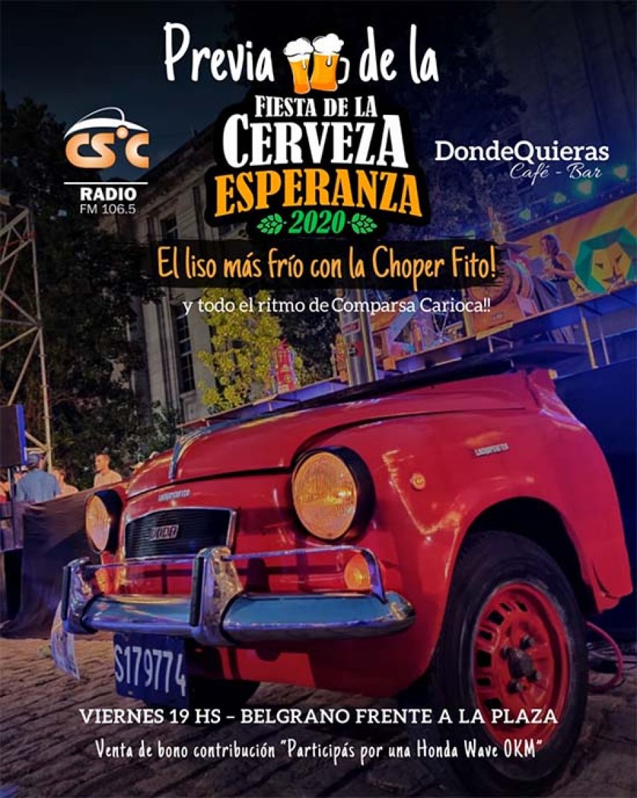 Este viernes desde las 19 en Donde Quieras Café Bar viviremos la previa de la Fiesta de la Cerveza de UCOES en Plaza San Martín con la más rica cerveza desde la "Choper Fito".