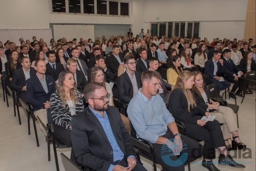 La ceremonia fue presidida por el Decano Sergio Parra, acompañado por la Vicedecana Amorina Sánchez y el Secretario Académico Sebastián Recce.