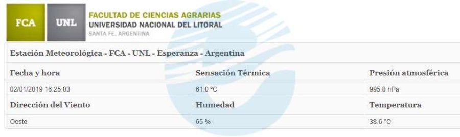 Desde la página web de la casa de altos estudios se puede observar minuto a minuto los comportamientos del clima según los sensores ubicados en el sector oeste de Esperanza, más precisamente en el Campus FAVE.