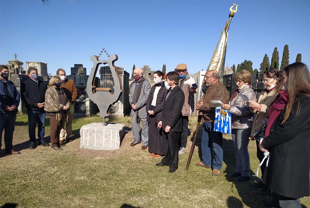 En el lugar se inauguró un cenotafio con forma de lira que es el espíritu de la música y "es lo que mejor representa a nuestra sociedad" dijo el presidente Hugo Oprandi al presentar tan destacada obra de arte. "Está de frente al sol y mira al noreste que es el lugar desde donde llegaron nuestros fundadores" agregó.
