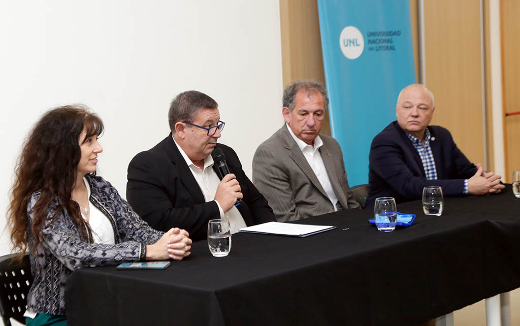 Del acto participaron el rector de la UNL Enrique Mammarella, decanos de las facultades de Ciencias Agrarias, Oscar Osan; de Humanidades y Ciencias, Laura Tarabella; de Ciencias Veterinarias, Sergio Parra y de Ingeniería Química, Adrián Bonivardi; el Secretario General de la UNL, Adrián Bollati y la Coordinadora de Proyectos Institucionales de la UNL, Carolina Sanchis.