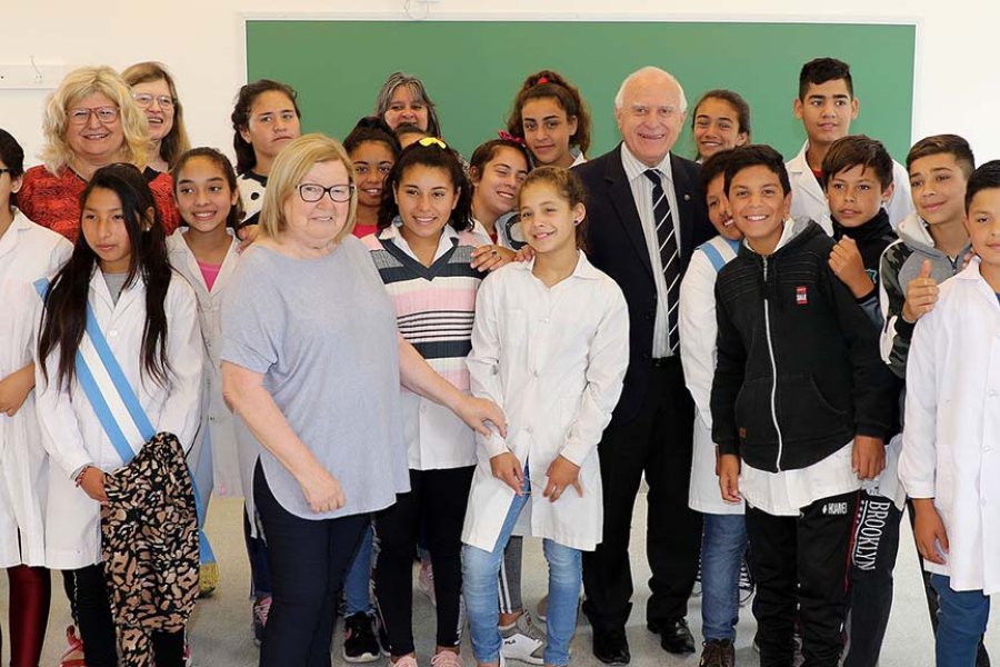 Al respecto, el gobernador recordó que "para eso había que abrir nuevas escuelas y construir nuevos edificios, porque con los que estaban no alcanzaba. También hubo que convocar nuevos equipos directivos y docentes con sus cargos, y había que poner esas nuevas escuelas en los lugares donde había jóvenes que no tenían sus bancos garantizados, por eso están en barrios como este, o en pueblos muy pequeños del interior, donde no había escuelas secundarias".