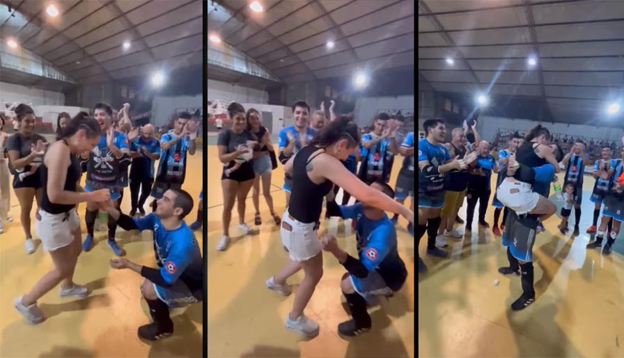 El arquero de Argentino de Franck celebró de una manera muy especial el último logro deportivo. Aprovechó el festejo de todos y le pidió compromiso a su novia en la cancha de futsal.
