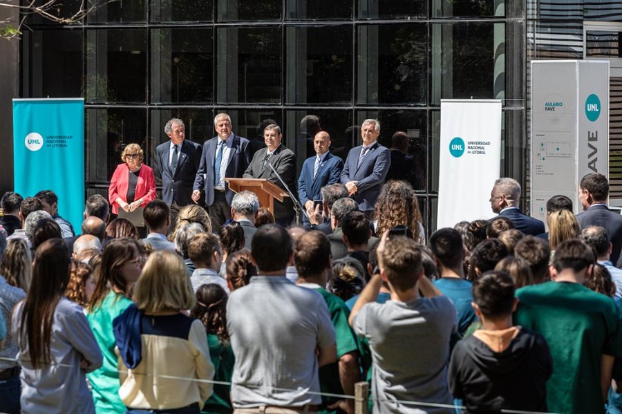 La intendenta participó del acto de inauguración del aulario en el Campus FAVE junto al Ministro de Educación de la Nación Jaime Perczyk y el Rector de la Universidad Nacional del Litoral Enrique Mammarella.
