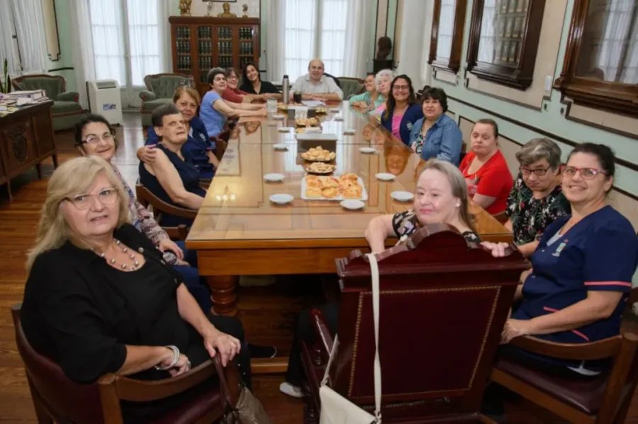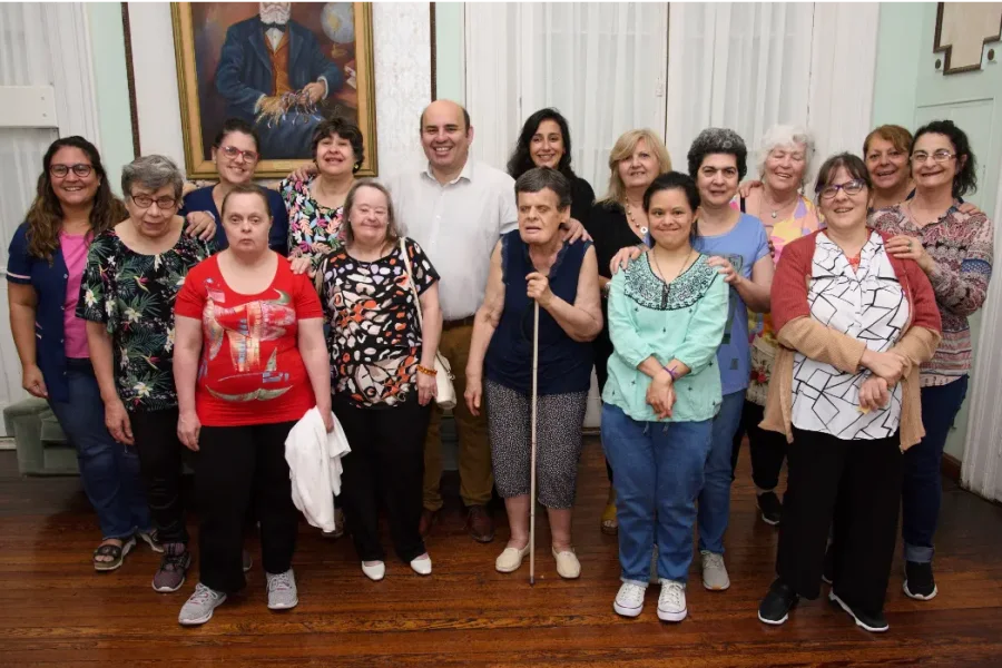 El intendente de Esperanza, Rodrigo Müller, acompañado por la secretaria de Desarrollo Humano, Florencia Blanche, recibieron este lunes a directivos, personal y residentes del “Hogar Compromiso Beatriz Rava De Platinetti”, una asociación civil dedicada a albergar a jóvenes y adultas con discapacidad.