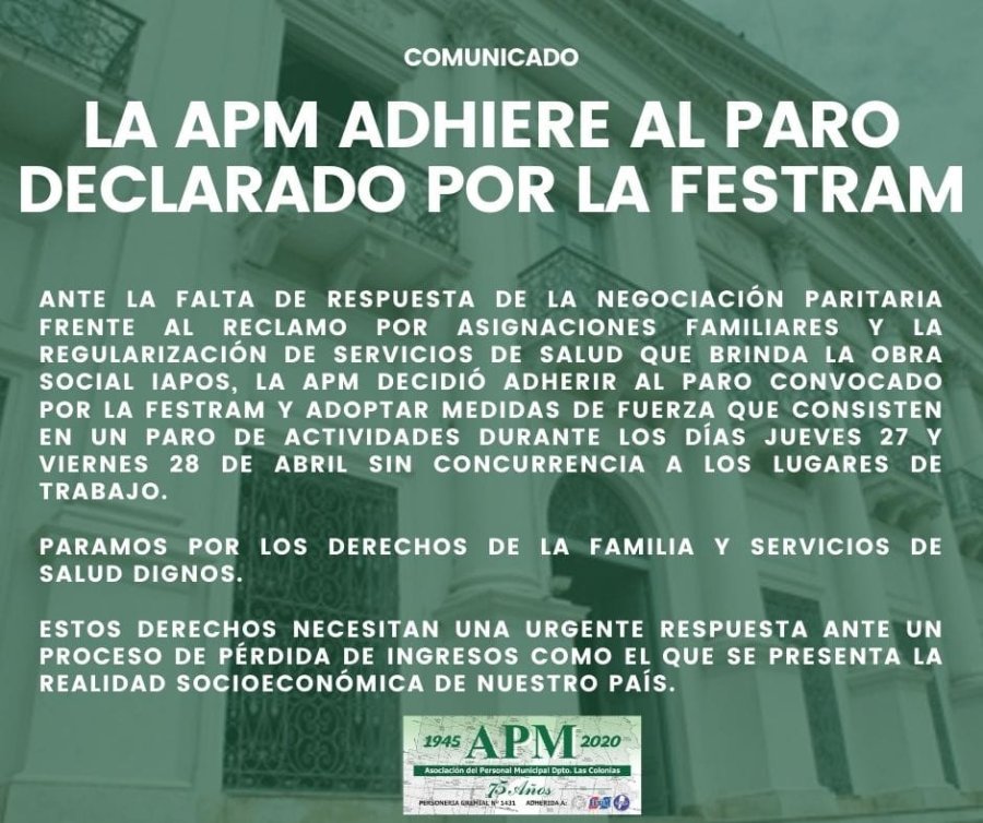 APM coincide en los días de protesta con la lanzada a nivel provincial por la Festram. La medida de fuerza de 48 horas afectará servicios en la ciudad.