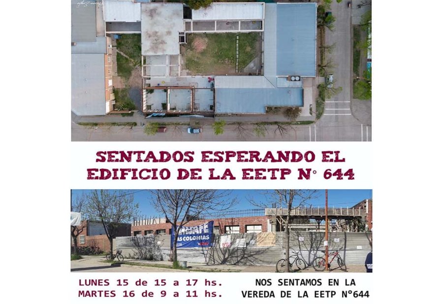 Este lunes por la tarde se realizó una "sentada" para reclamar que las autoridades respondan ante la increíble situación de paralización de la obra de la Escuela de Educación Técnica 644 "Gregoria Matorras" de la ciudad de Esperanza.