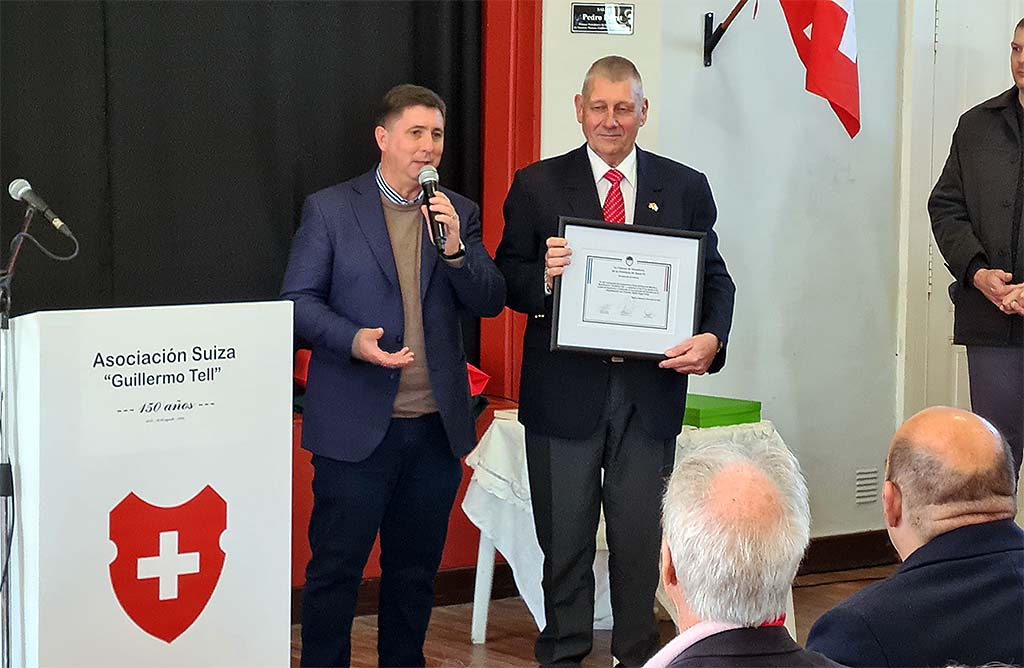 Acompañando al Presidente de la Asociación Suiza Guillermo Tell, Luis Megevand, al Embajador Suizo en la Argentina Hans-Ruedi Bortis y al intendente de Esperanza, Rodrigo Müller, el representante territorial de Las Colonias en el congreso provincial, reconoció institucionalmente a la entidad.